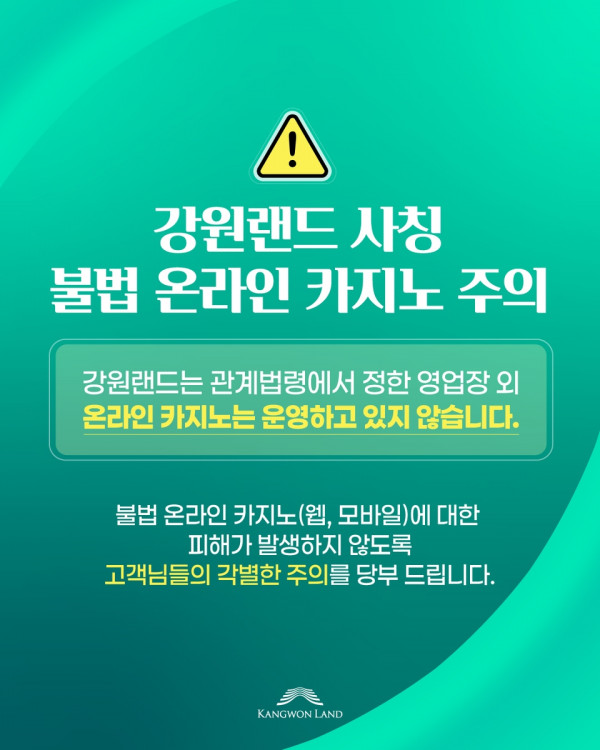 강원랜드 사칭 불법 온라인 카지노 기승, 주의보 발령